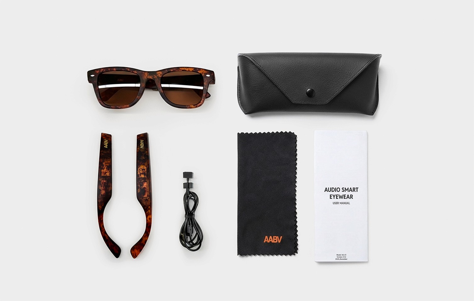 AABV FLIP (WL-01) combines functional open-ear audio technology with a patented interchangeable-temple design, allowing users and brands to easily swap between smart temples and classic non-smart temples. Ideal for music, calls, and daily wear — with multiple lens types and 17 color options for full customization.